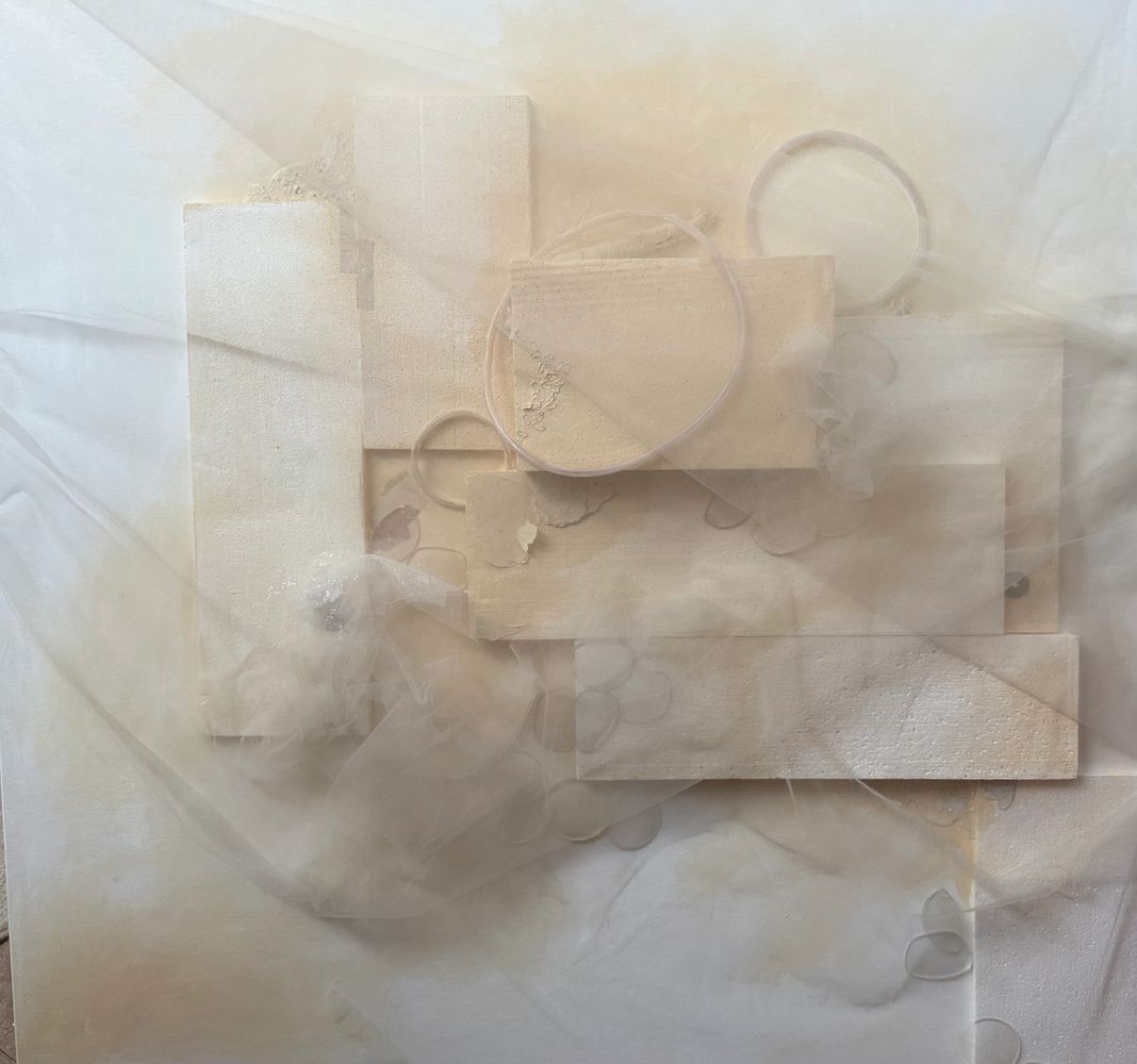 In my mixed media pieces, I use found objects. By repetition, the objects may fall into order or disorder, often evolving from deeply personal experiences. In every piece, a transformation takes place. I want the viewer to see a collective image and come closer to be surprised. My portfolio also includes drawings and abstract sculptures.